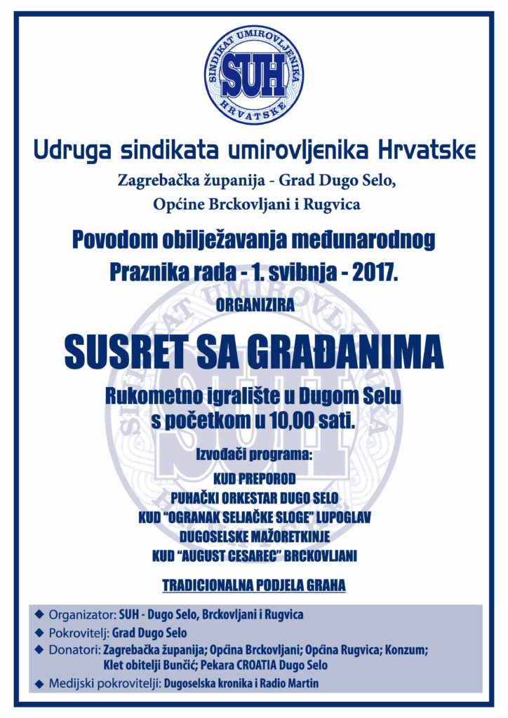 Gradsko društvo Crvenog križa Dugo Selo organizira redovnu akciju dobrovoljnog darivanja krvi koje će se održati u ponedjeljak 24.04.2017.g. u Gradskoj sportskoj dvorani Dugo Selo od 12.00 h do 19.00 […]