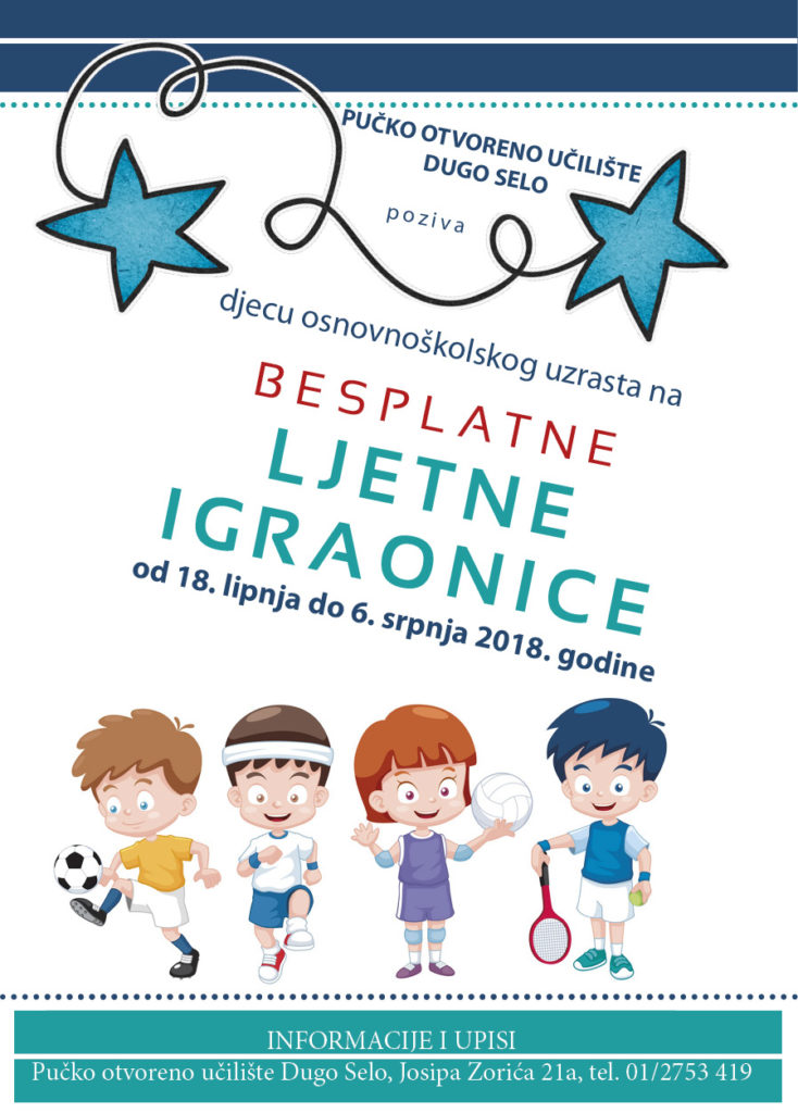 U ponedjeljak 18. lipnja počinju besplatne Ljetne igraonice Pučkog otvorenog učilišta Dugo Selo. POU obavještava roditelje polaznika da su sva djeca upisana u igraonice prema izraženim željama, a prema najavljenom […]