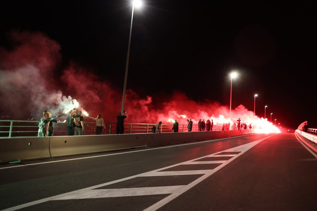 Vatromet i baklje na prvom nadvožnjaku u Dugom Selu