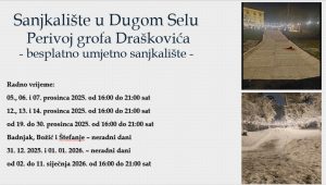 Objavljujemo radno vrijeme besplatnog sanjkališta u Perivoju grofa Draškovića: 05., 06. i 07. prosinca 2025. od 16:00 do 21:00 sat 12., 13. i 14. prosinca 2025. od 16:00 do 21:00